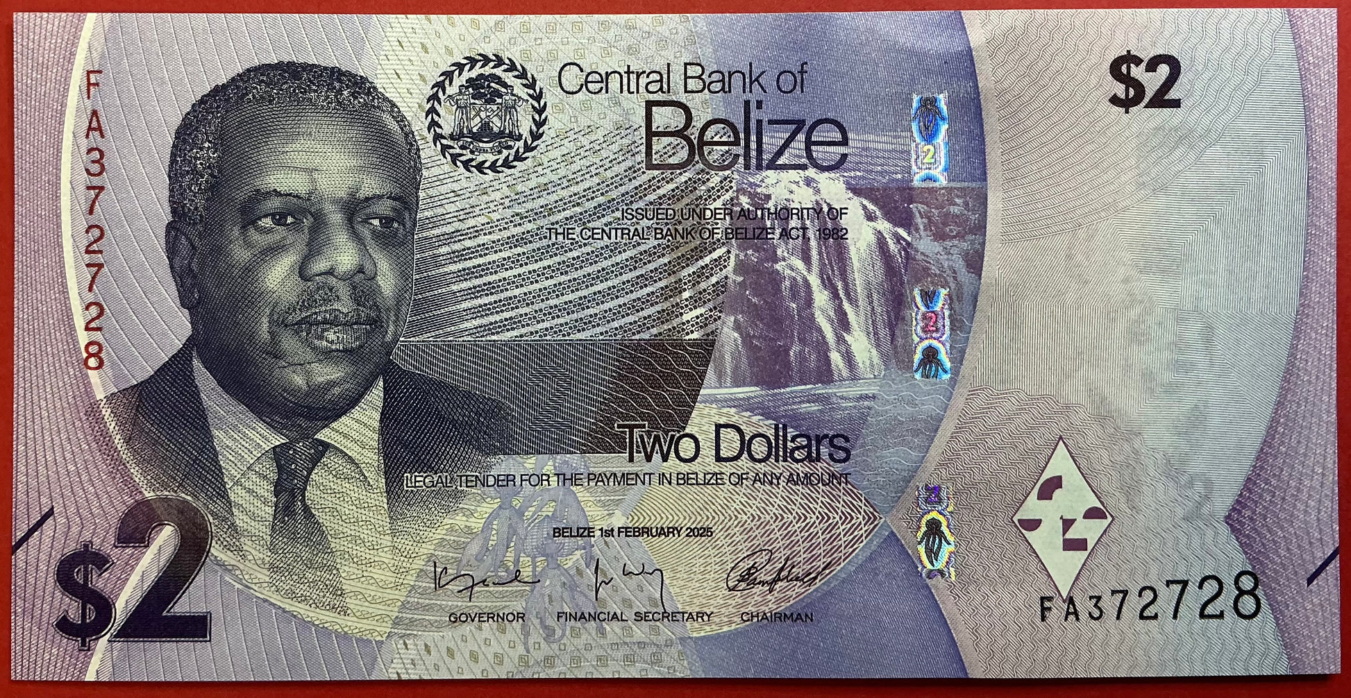 Bellize - 2 Dollars 1.2.2025 P#W73 Kvalitet 0