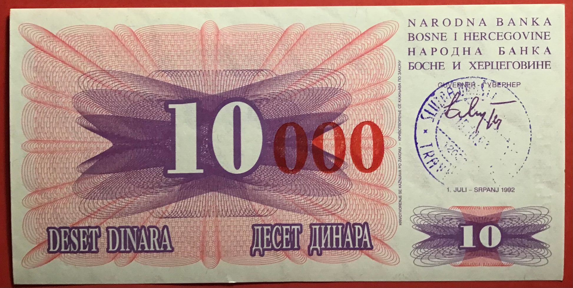 Bosnia-Herzegovina - 10.000 Dinara 15.10.1993 *Travnik* P#53b Kvalitet 01