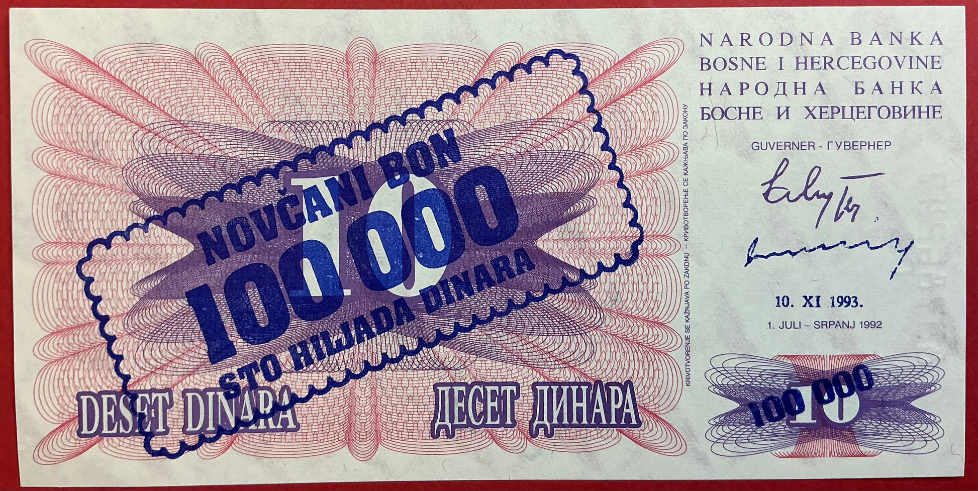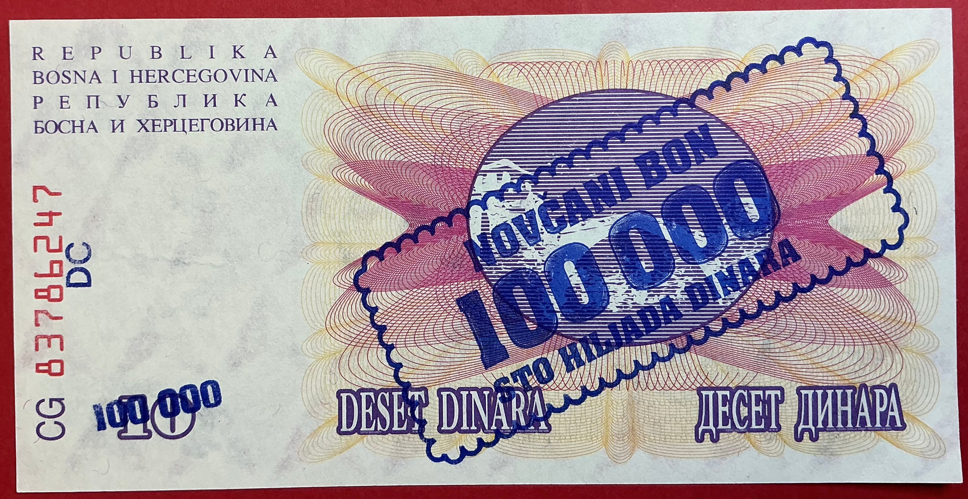 Bosnia-Herzegovina - 100.000 Dinara 10.11.1993 P#34b Kvalitet 01