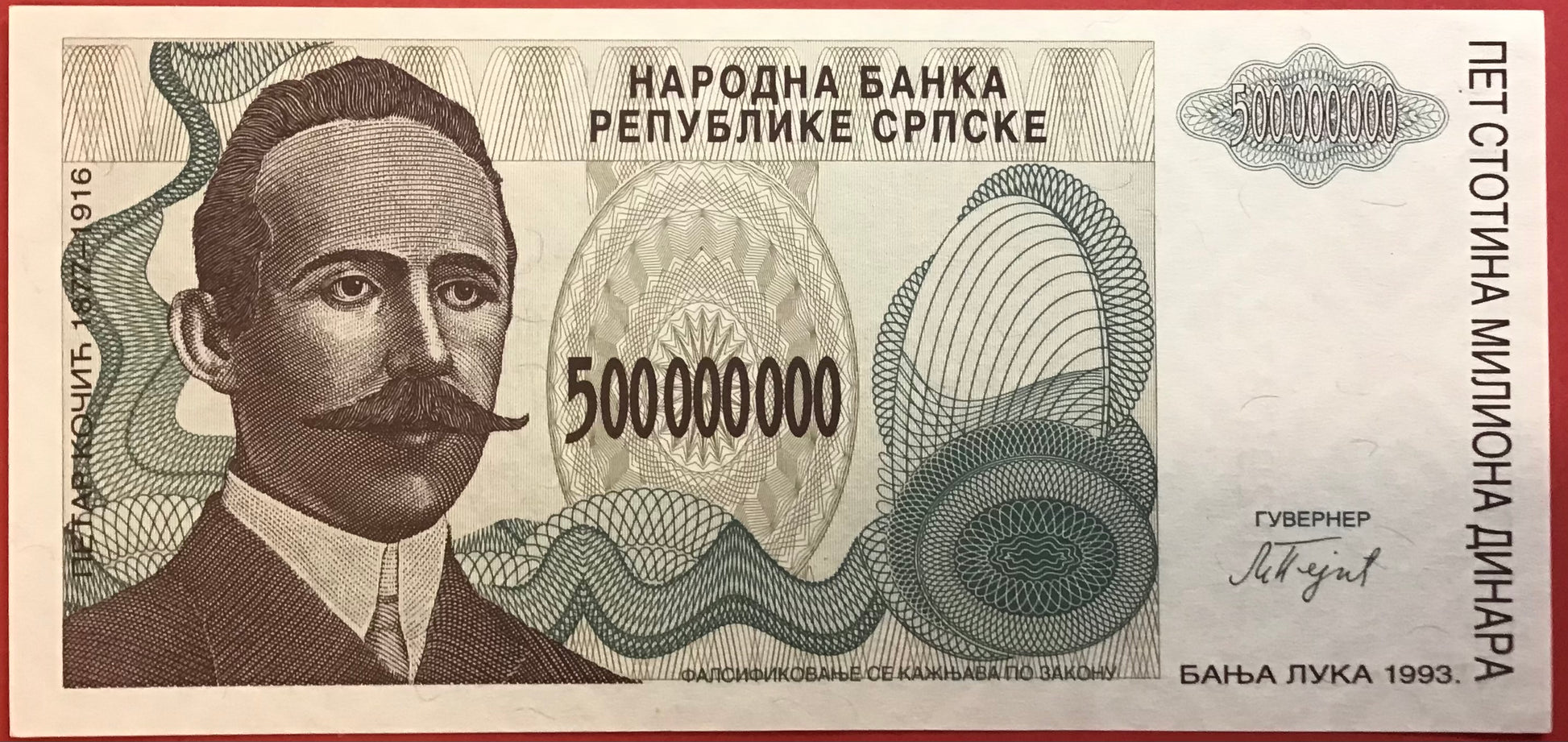 Bosnia & Herzegovina/Serbian Republic - 500.000.000 Dinara 1993 P#158a Kvalitet 0