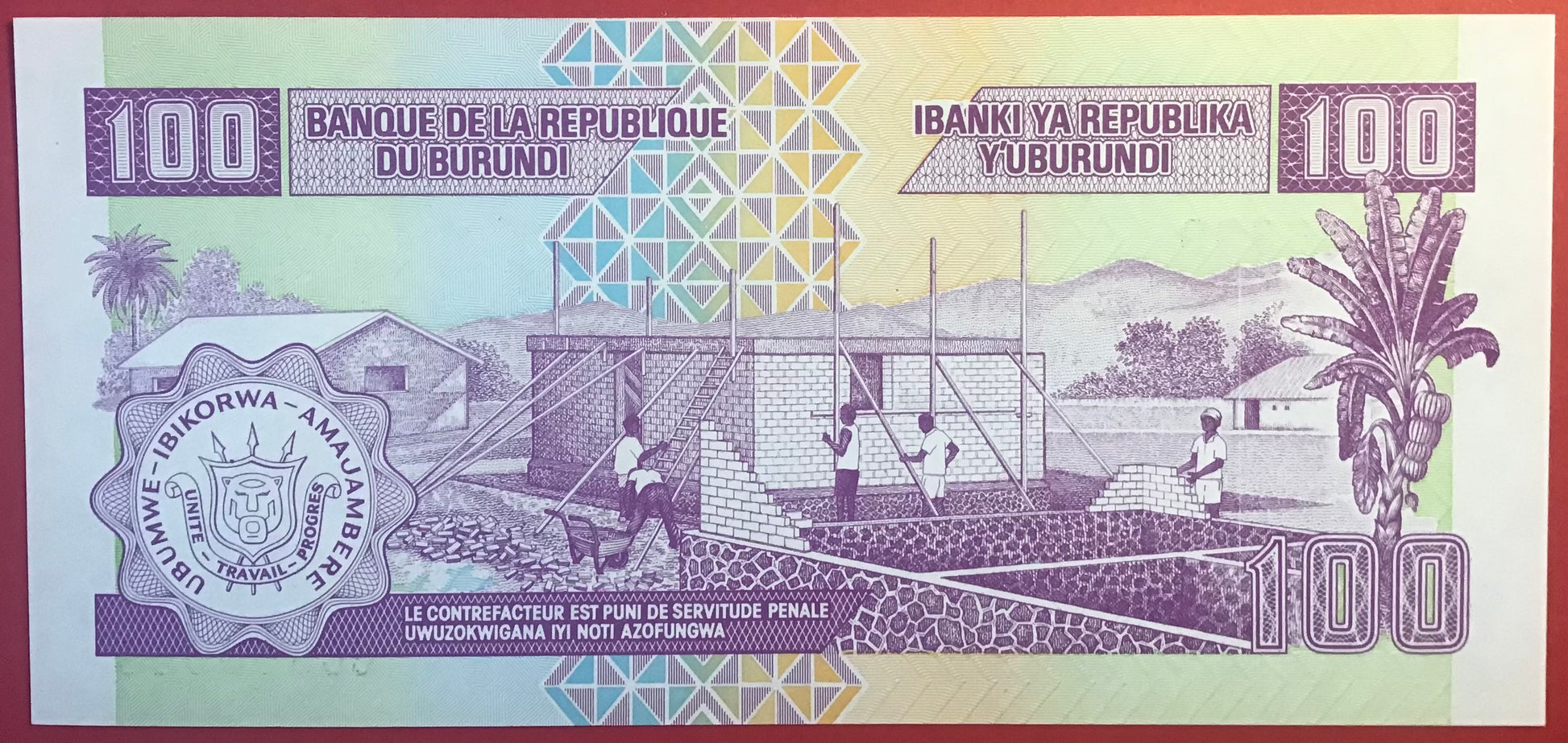 Burundi - 100 Francs 1.8.2001 P#37c Kvalitet 0