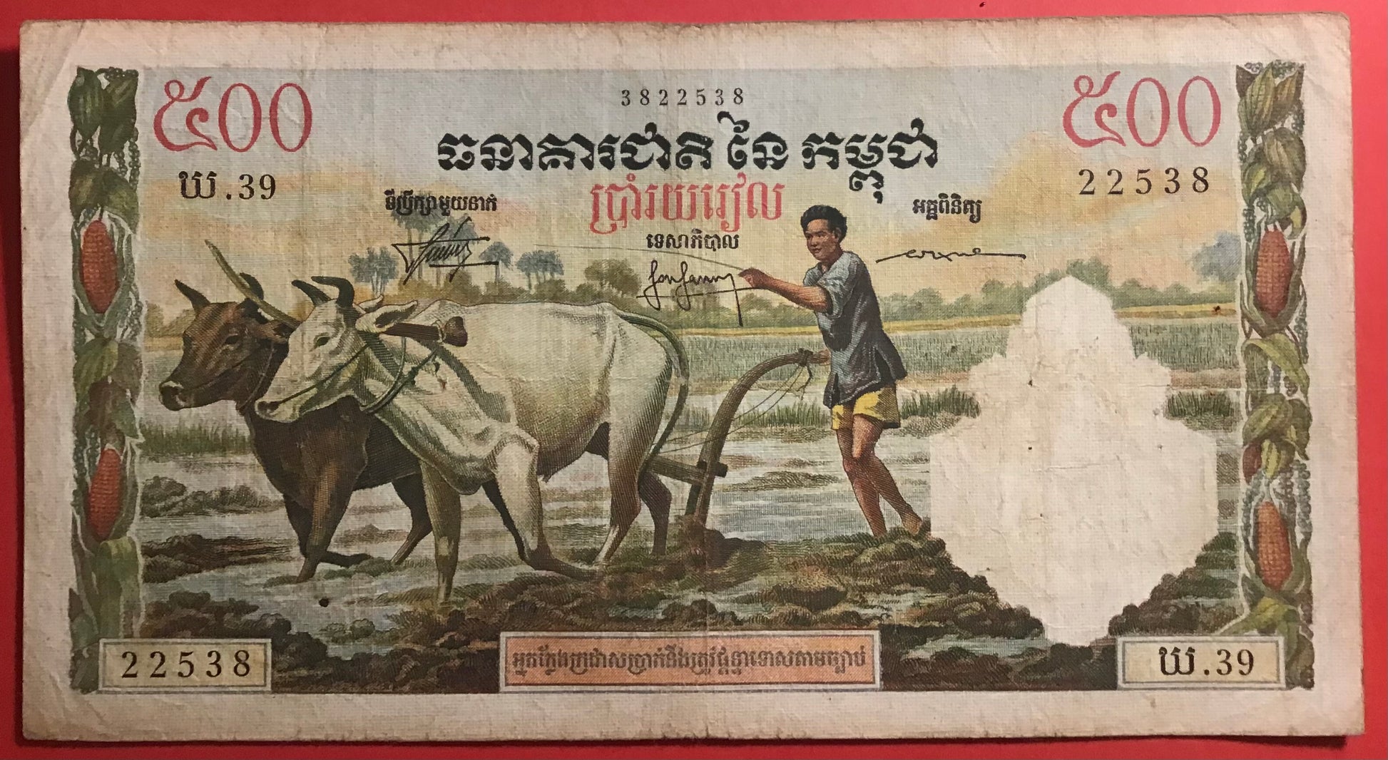 Cambodia - 500 Riels (1958-70) P#14c Kvalitet 1/1+