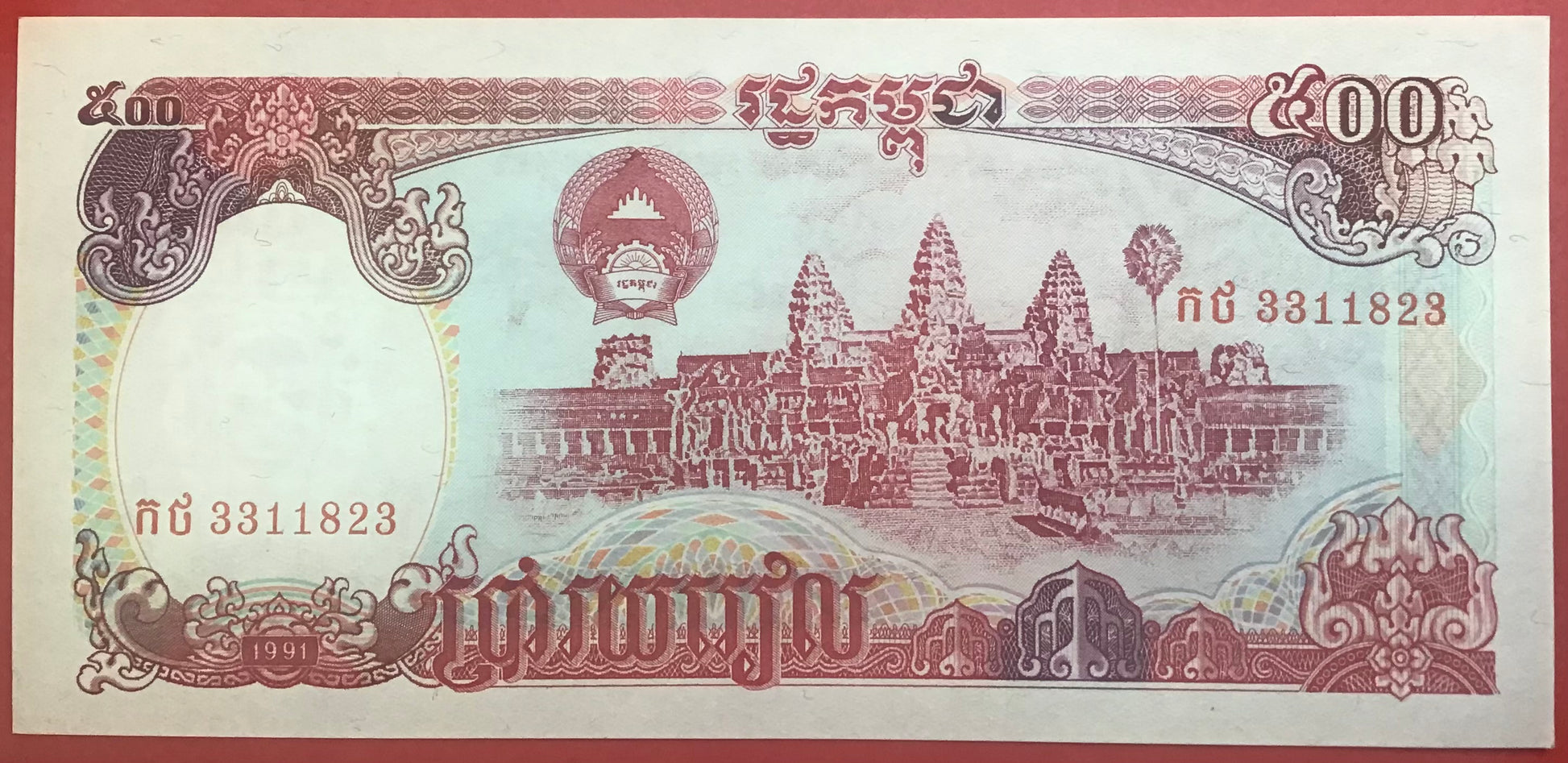 Cambodia - 500 Riels 1991 P#38a Kvalitet 0