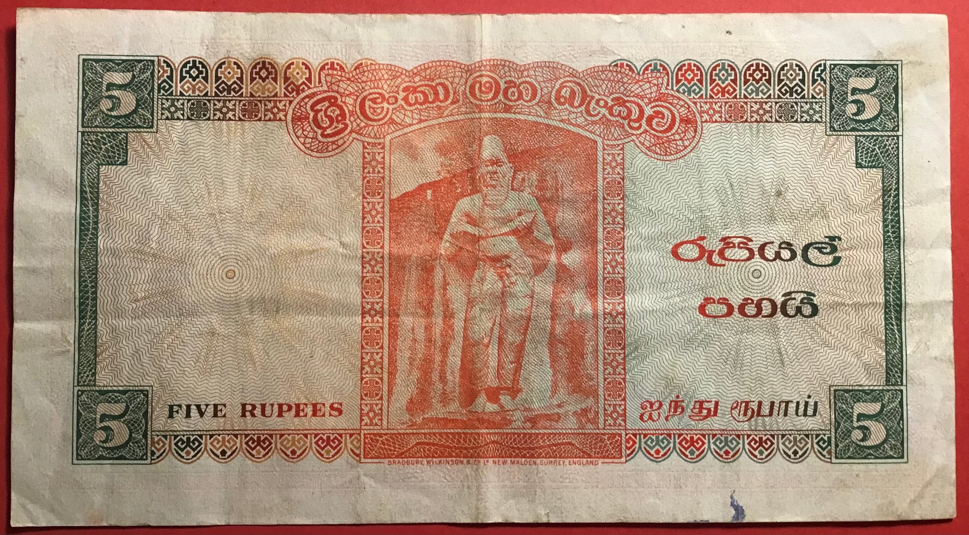 Ceylon - 5 Rupees 31.5.1957 P#58a Kvalitet 1/1+