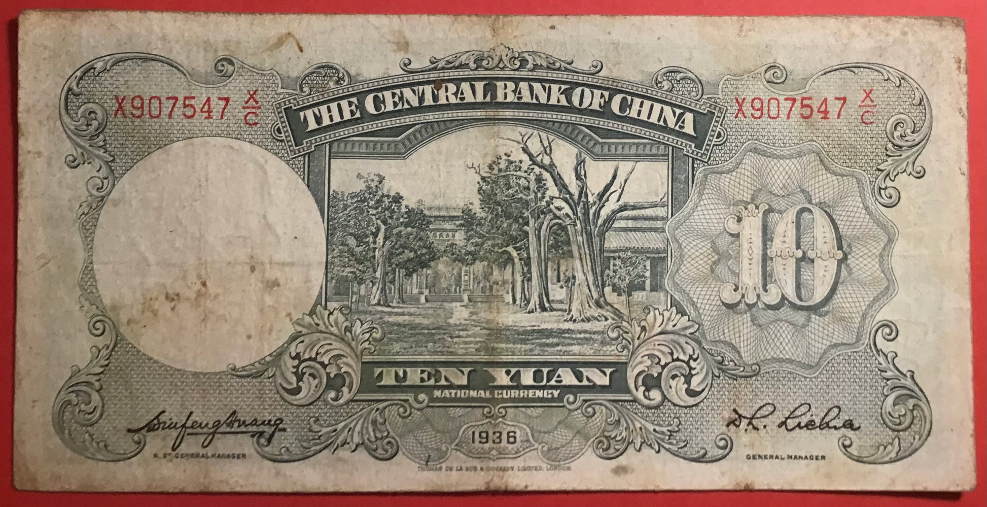 China - 10 Yüan 1936 P#214a Kvalitet 1/1+