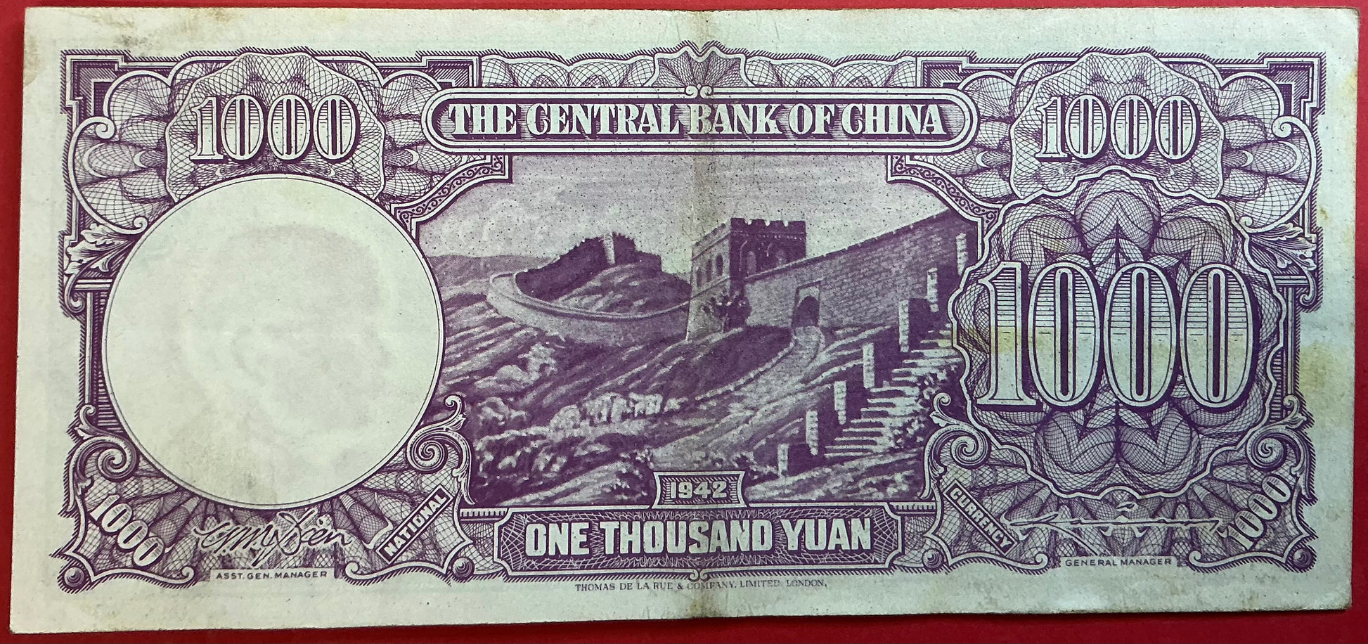 China/Republic - 1000 Yüan 1942 P#252 Kvalitet 1+