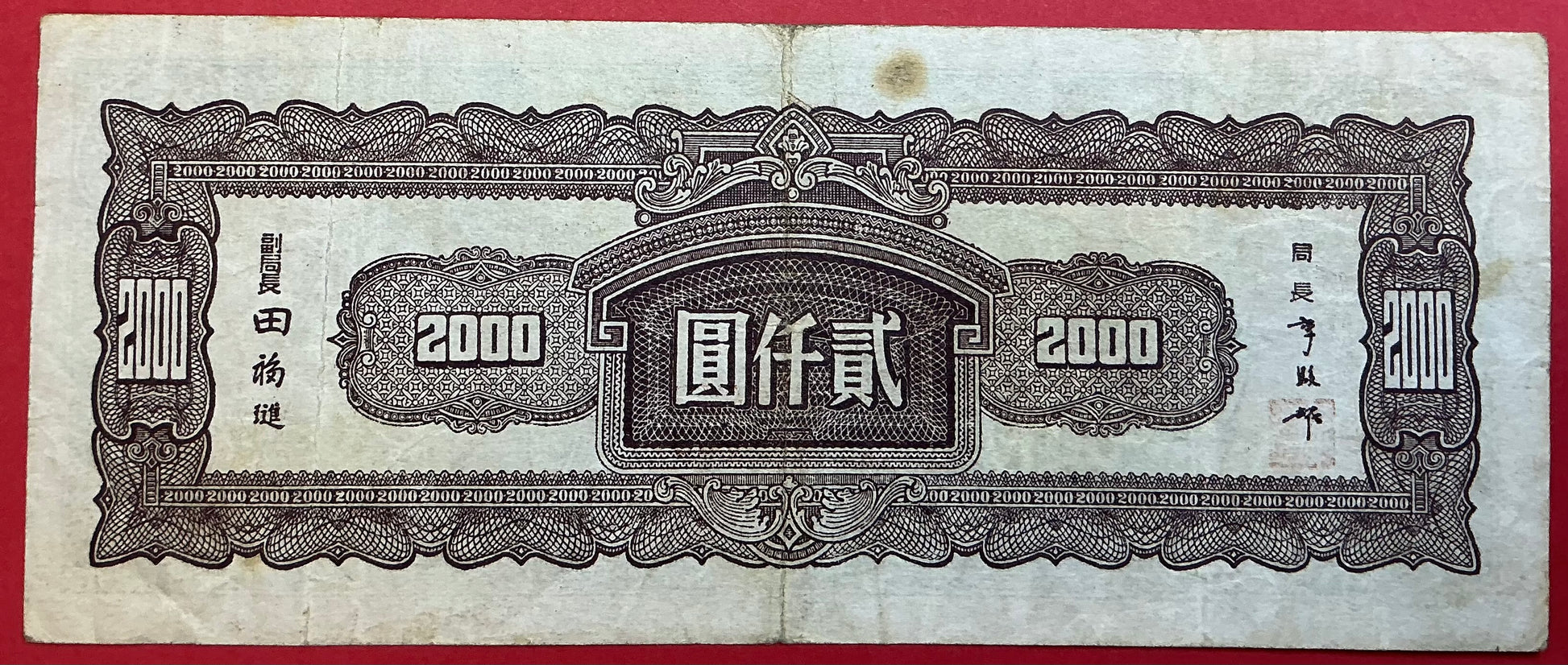 China/Republic - 2000 Yüan 1945 P#300 Kvalitet 1
