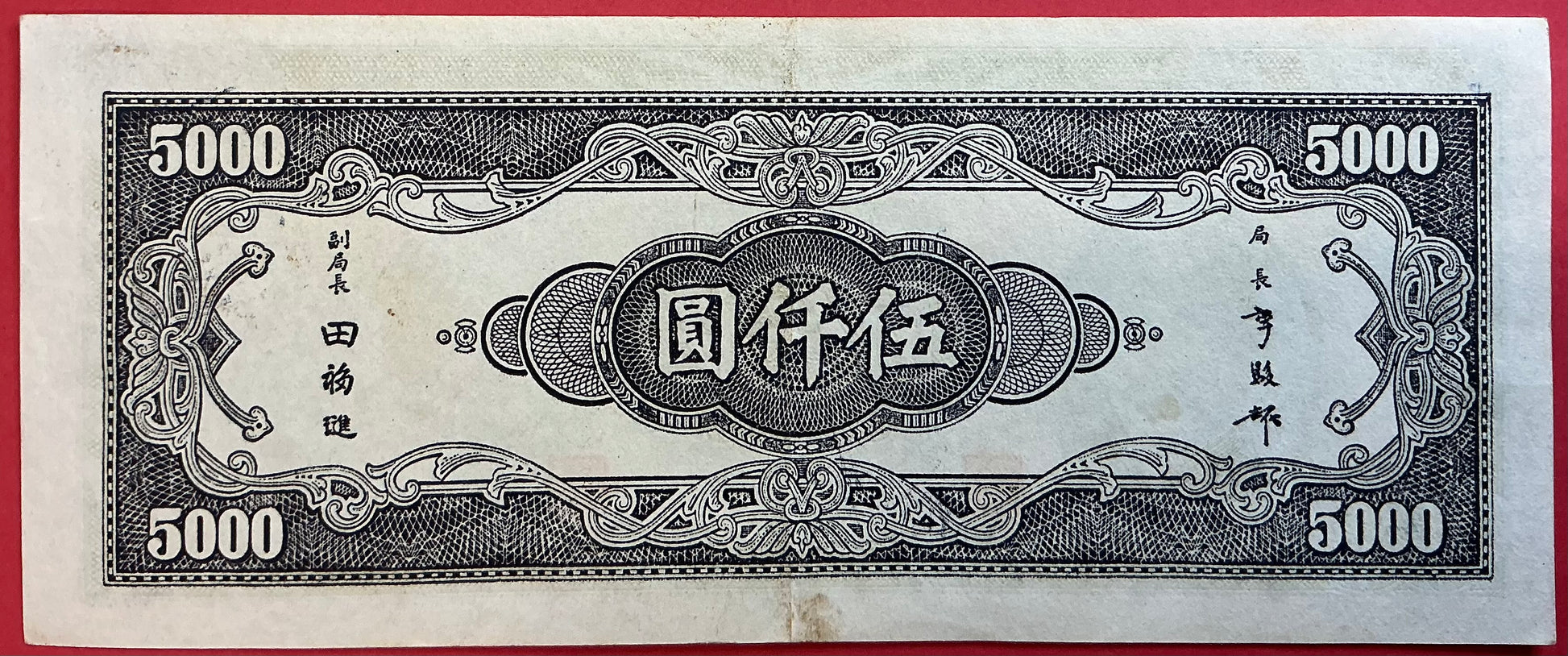 China/Republic - 5000 Yüan 1945 P#305 Kvalitet 1+/01