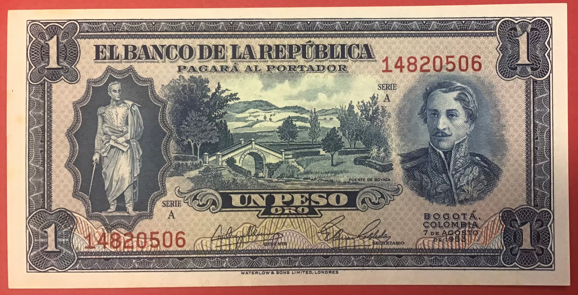 Colombia - 1 Peso Oro 7.8.1953 P#398 Kvalitet 01