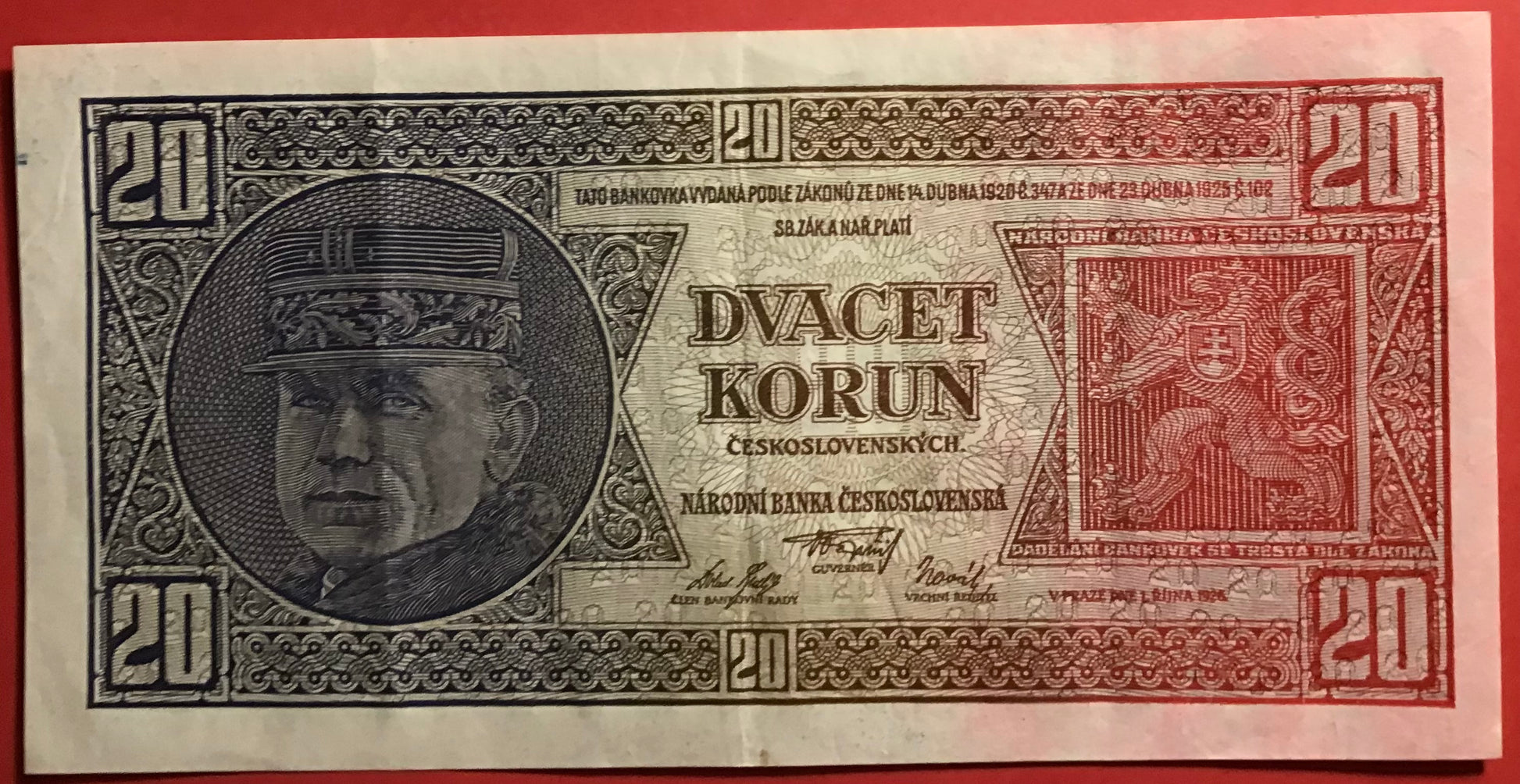 Czechoslovakia - 20 Korun 1.10.1926 P#21a Kvalitet 1+