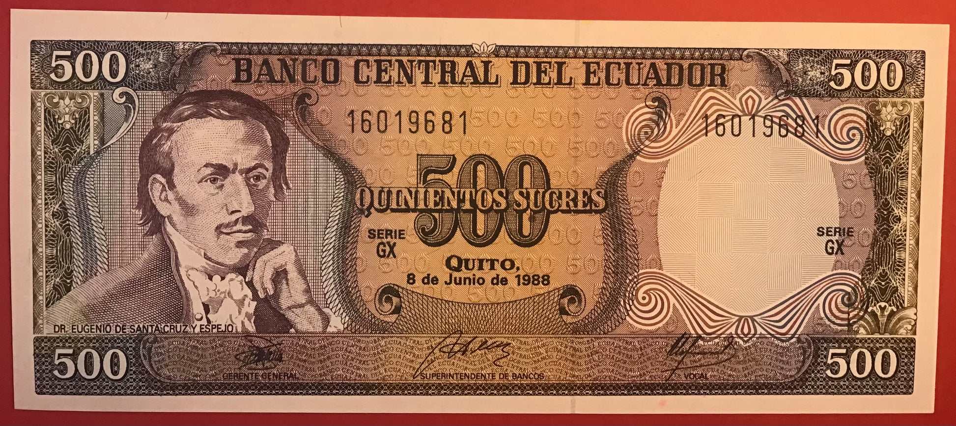 Ecuador - 500 Sucres 8.6.1988 P#124Aa Kvalitet 0
