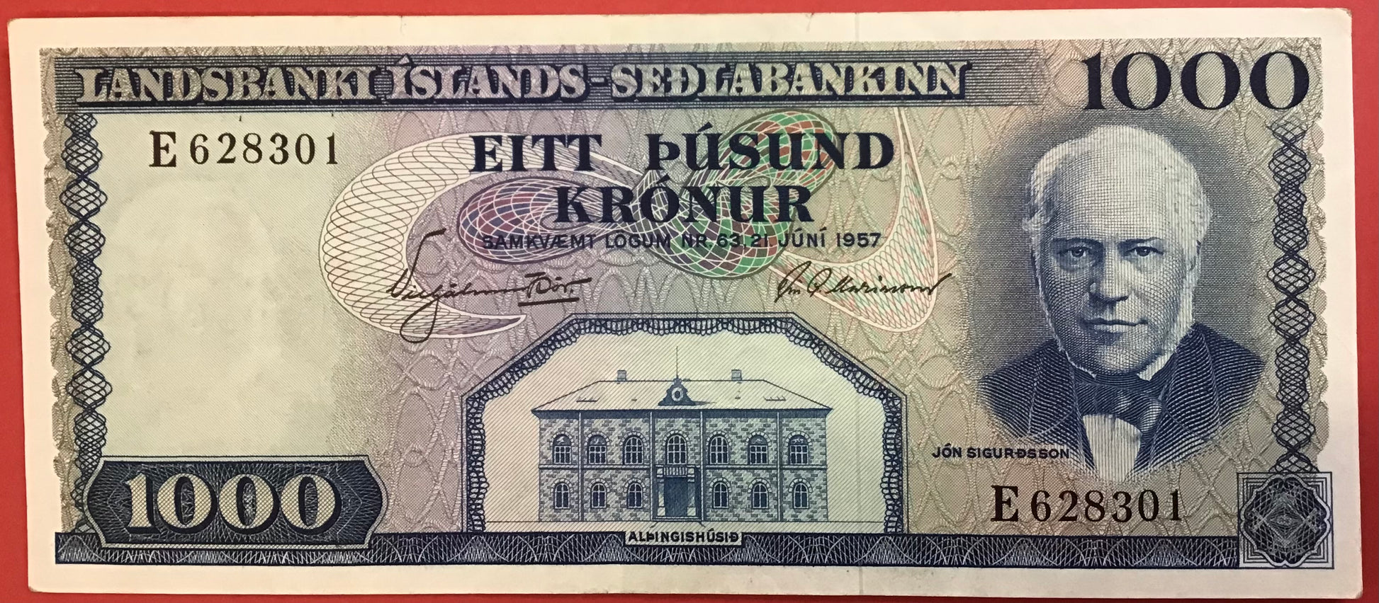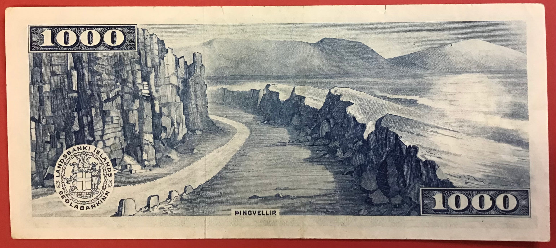 Iceland - 1000 Krónur P#41a Kvalitet 1+. *Lille revne i venstre top*