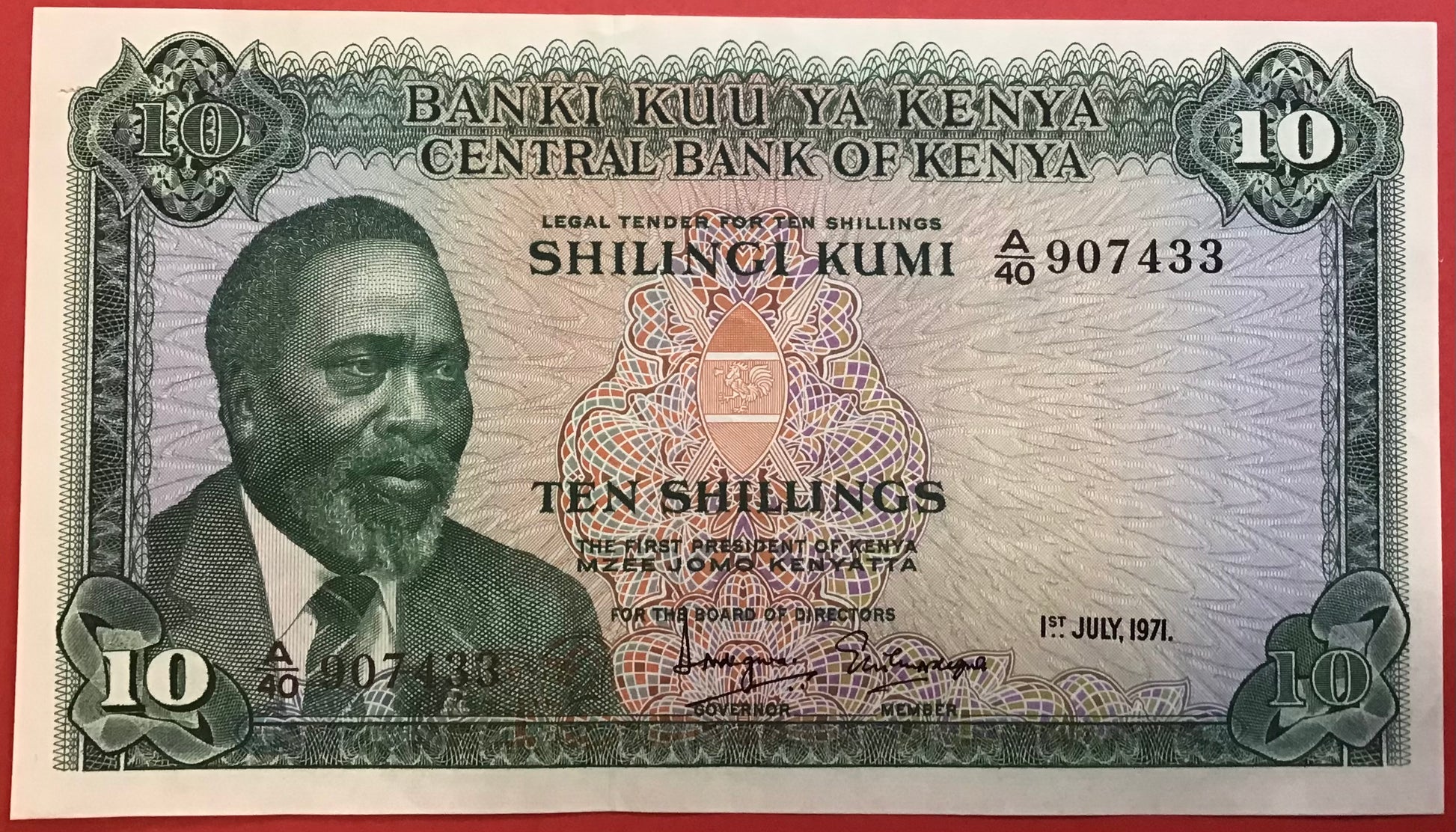 Kenya - 10 Shillings 1.7.1971 P#7b Kvalitet 01