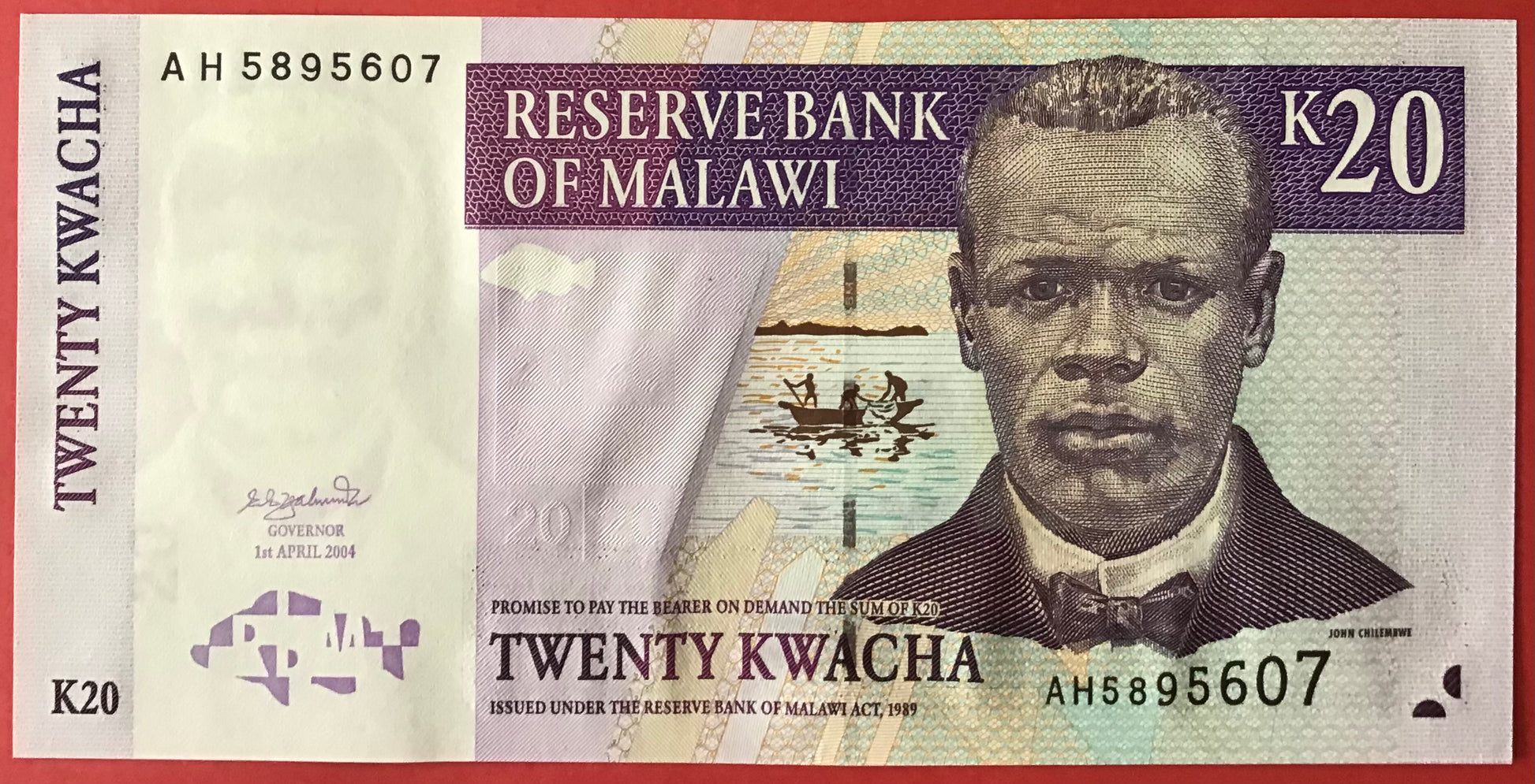 Malawi - 20 Kwacha 1.4.2004 P#44b Kvalitet 0