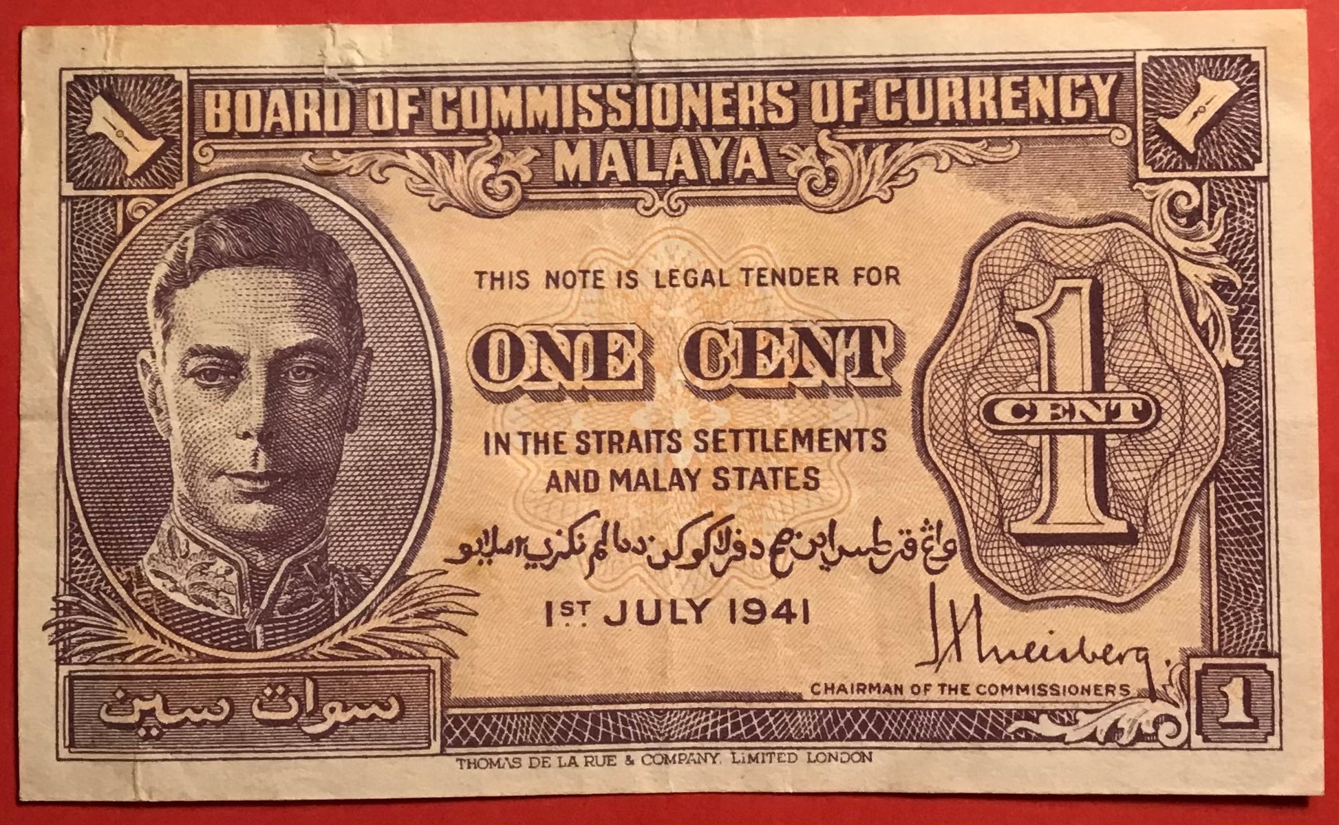 Malaya/Board Of Commissioners Of Currency - 1 Cent 1.7.1941 P#6 Kvalitet 1+