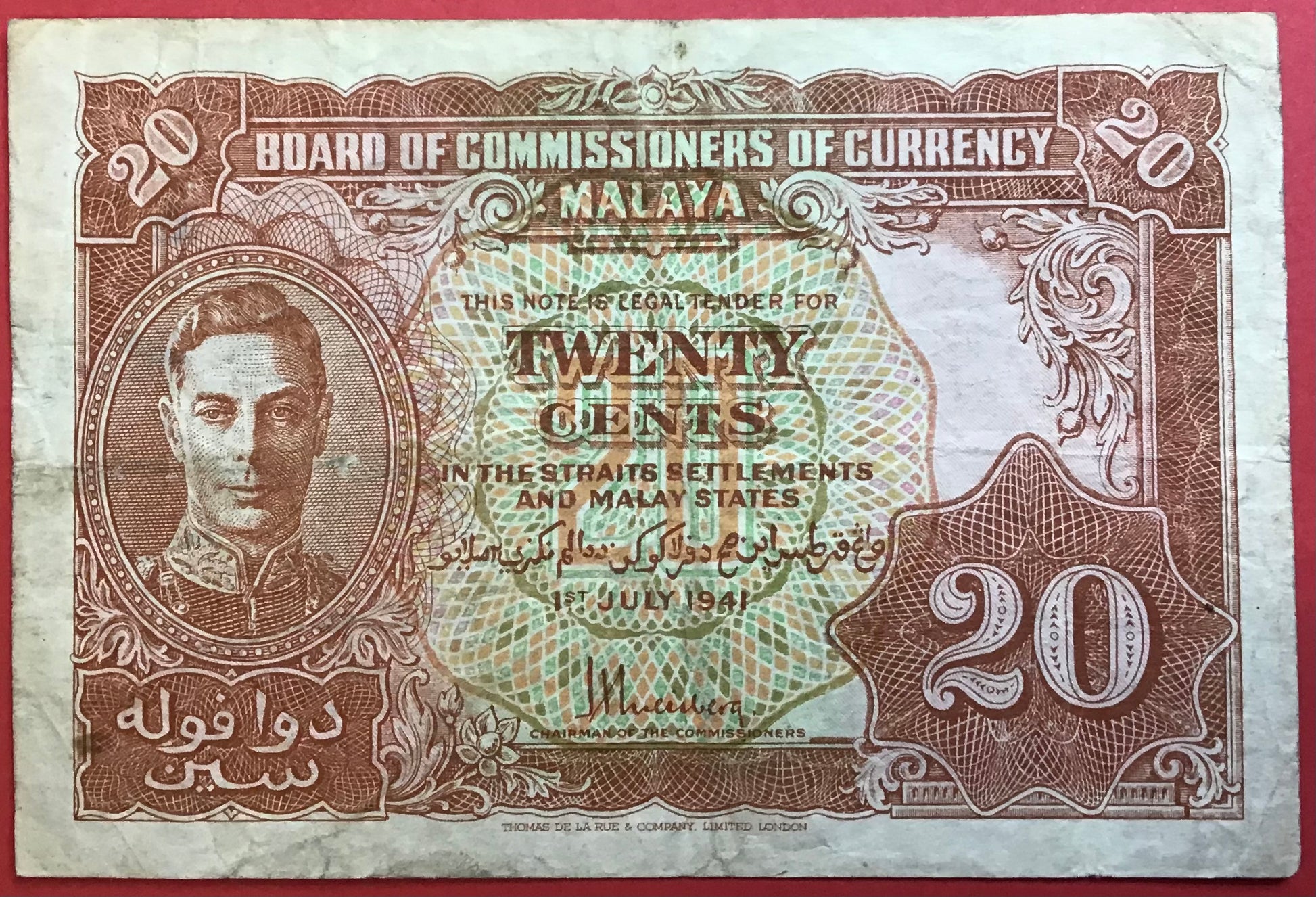 Malaya/Board Of Commissioners Of Currency - 20 Cents 1.7.1941 P#9a Kvalitet 1+