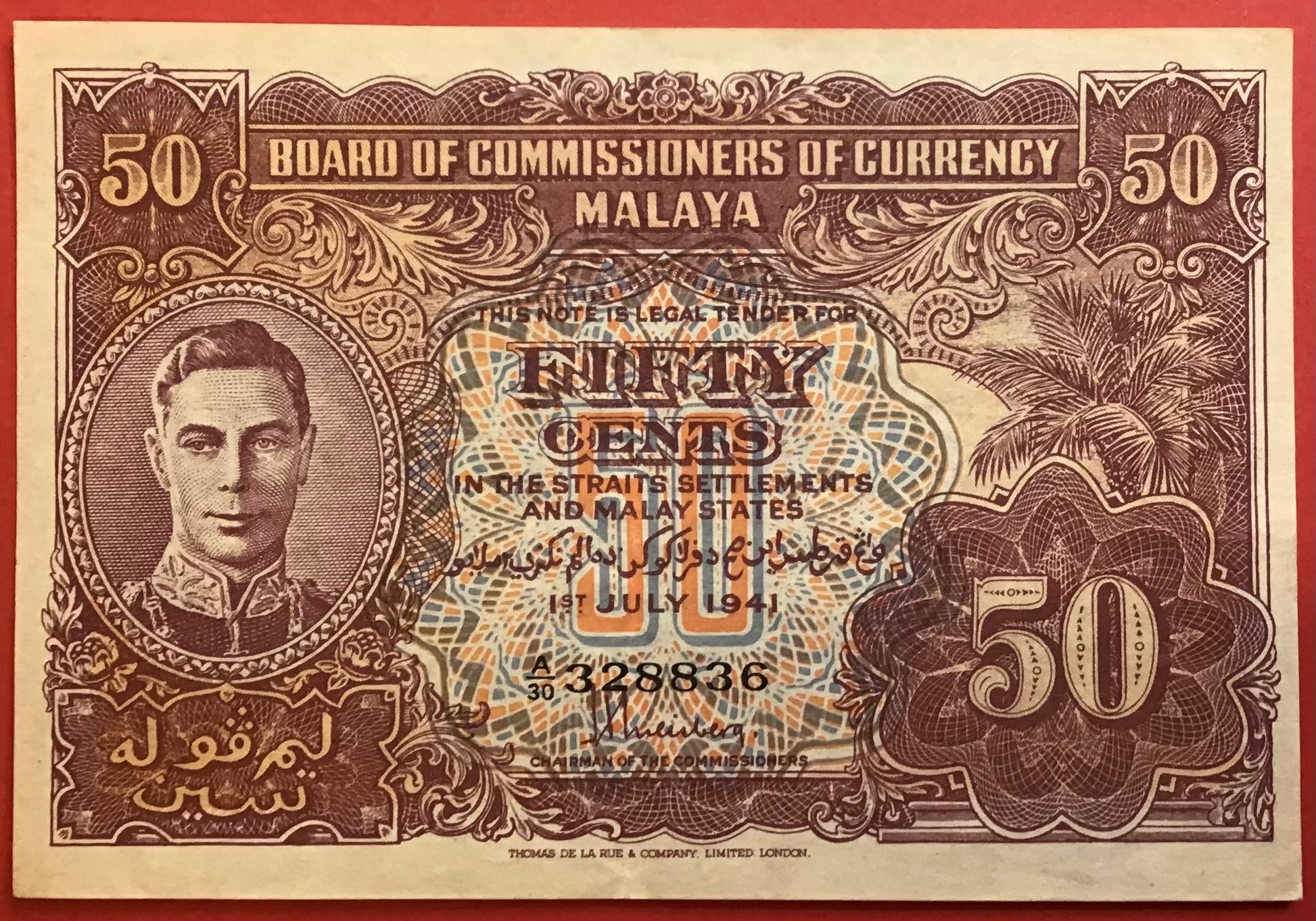 Malaya/Board Of Commissioners Of Currency - 50 Cents 1.7.1941 P#10b Kvalitet 1+/01
