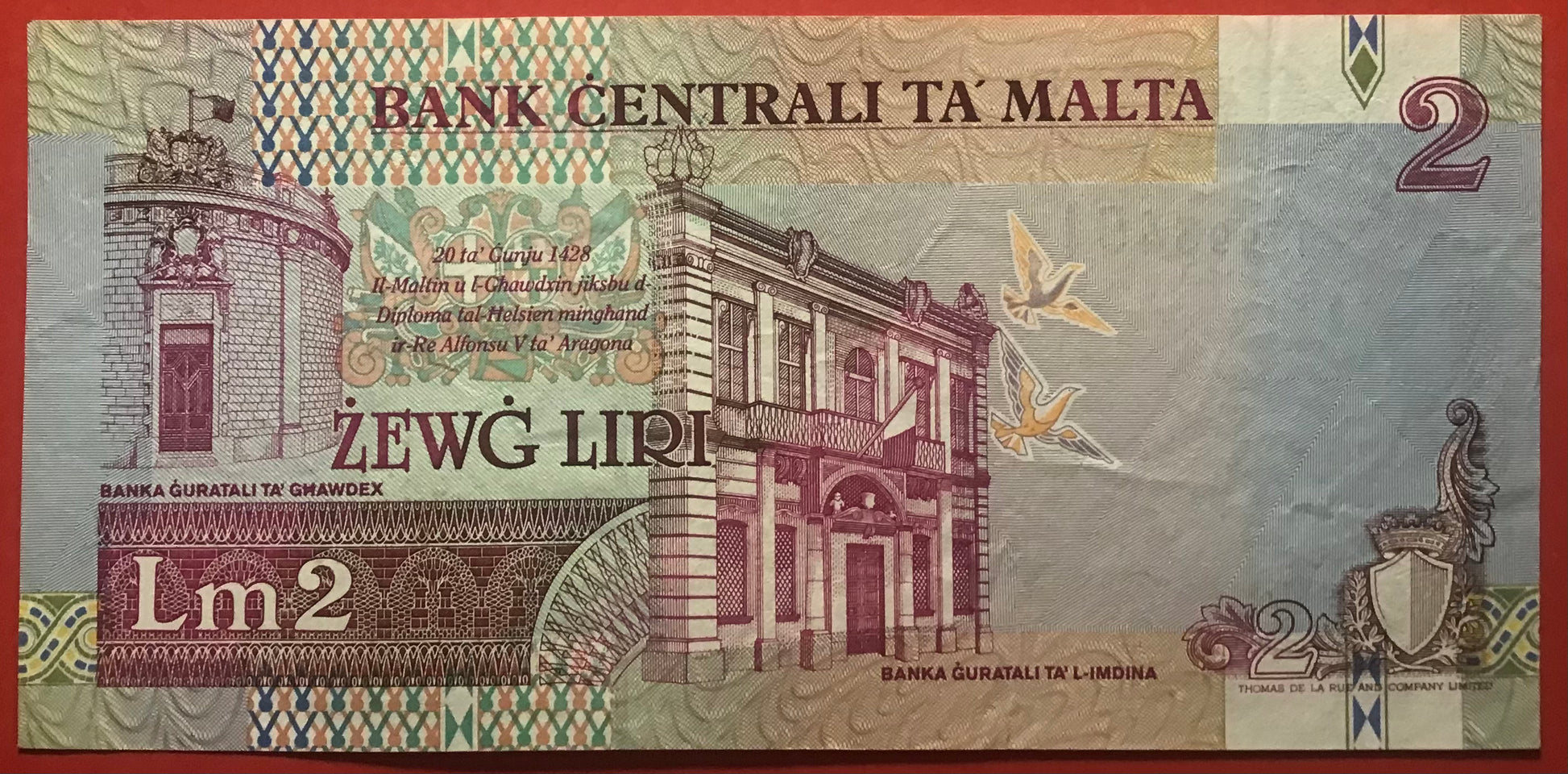 Malta - 2 Liri (1994) P#45d Kvalitet 1+