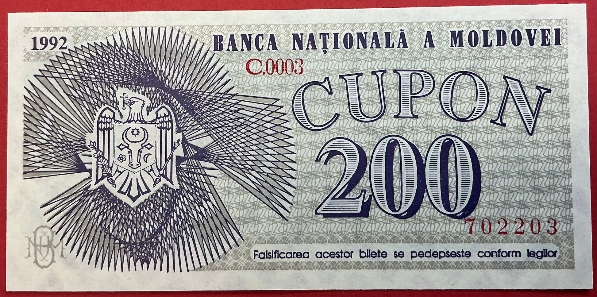 Moldova - 200 Cupon 1992 P#2 Kvalitet 0