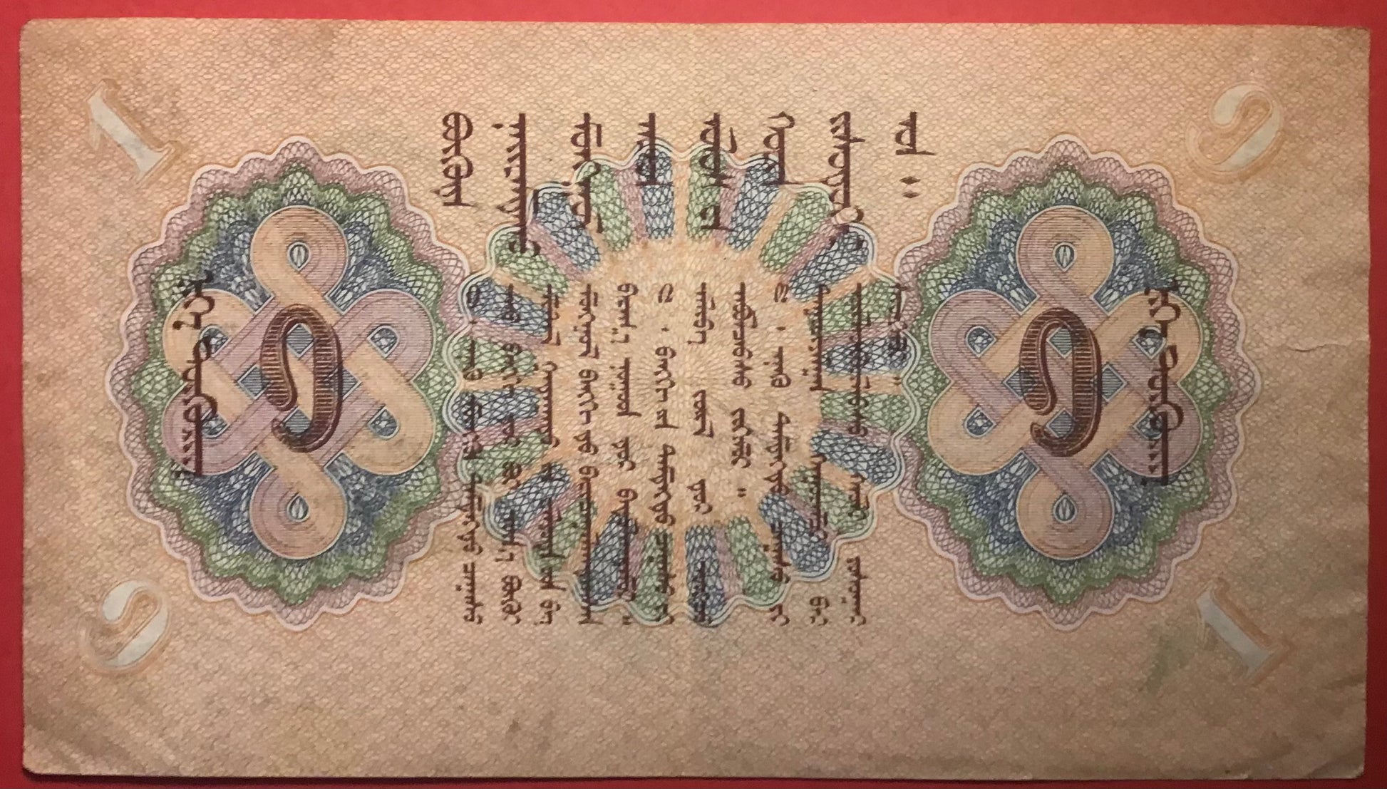 Mongolia - 1 Tugrik 1939 P#14 Kvalitet 1/1+ *Et par revner i venstre side*