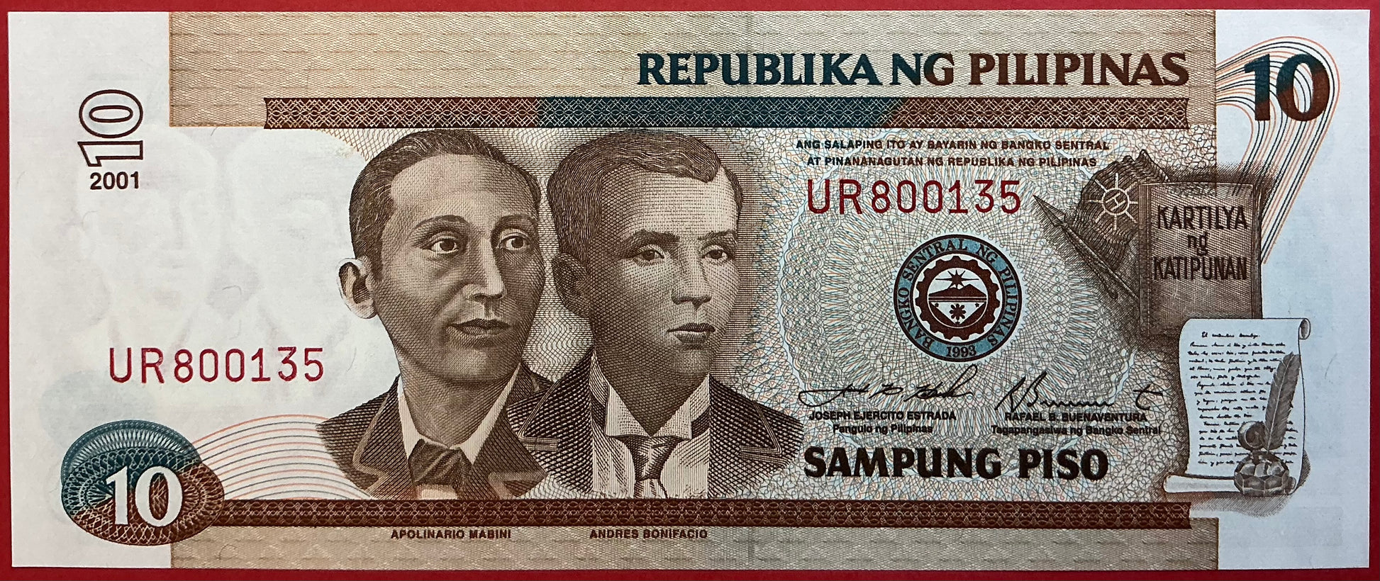 Philippines - 10 Piso 2001 P#187f Kvalitet 0