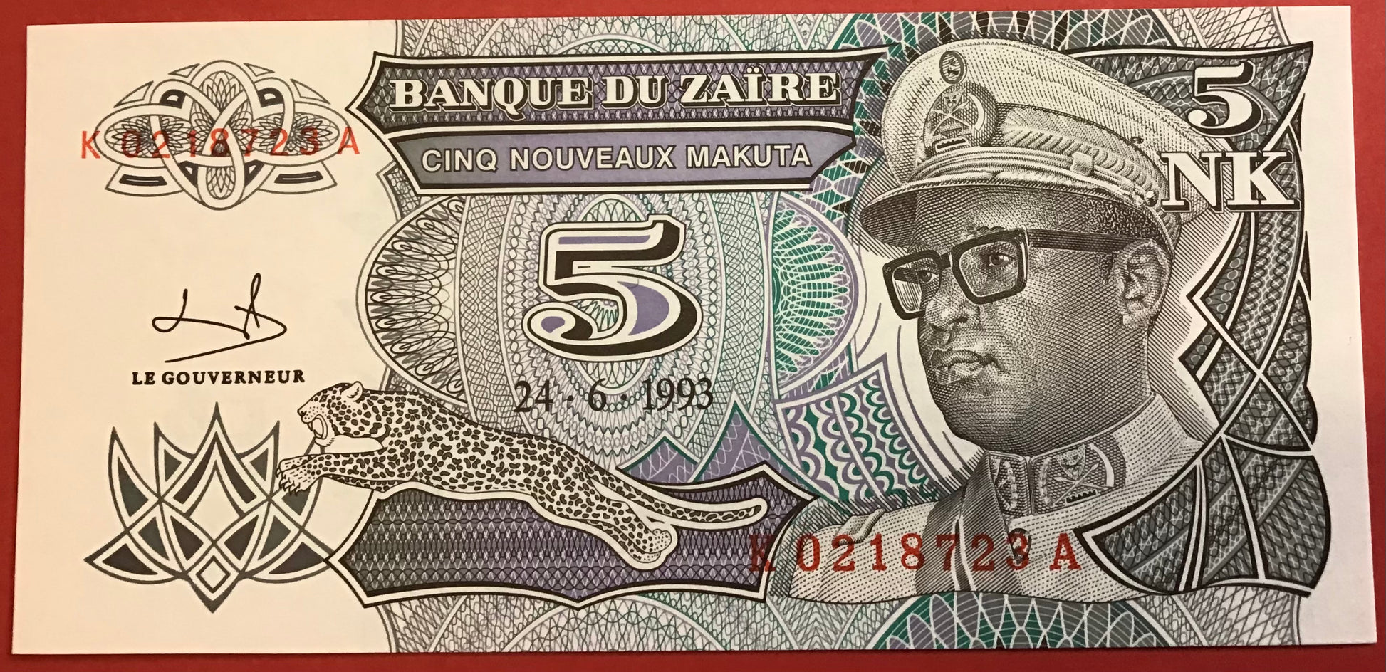 Zaïre - 5 Nouveaux Makuta 24.6.1993 P#48a Kvalitet 0