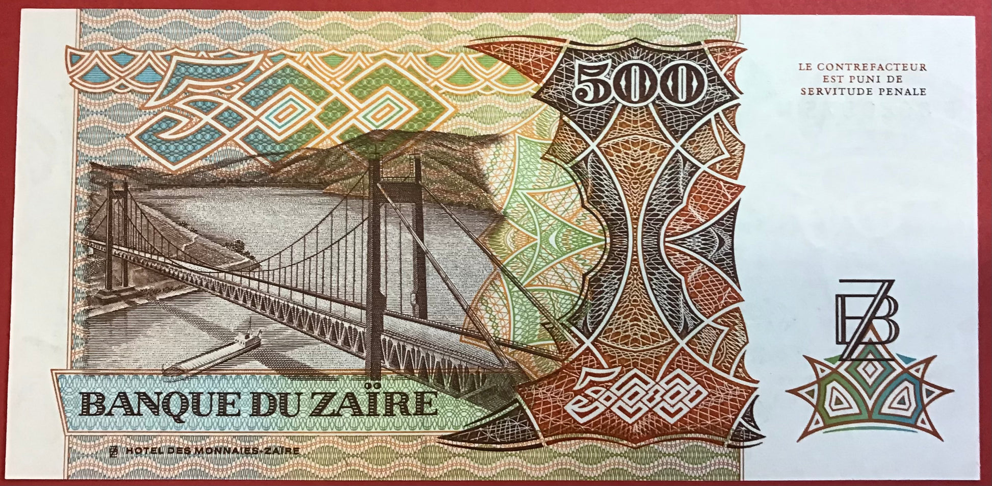Zaïres - 500 Zaïres 24.6.1989 P#34a Kvalitet 0